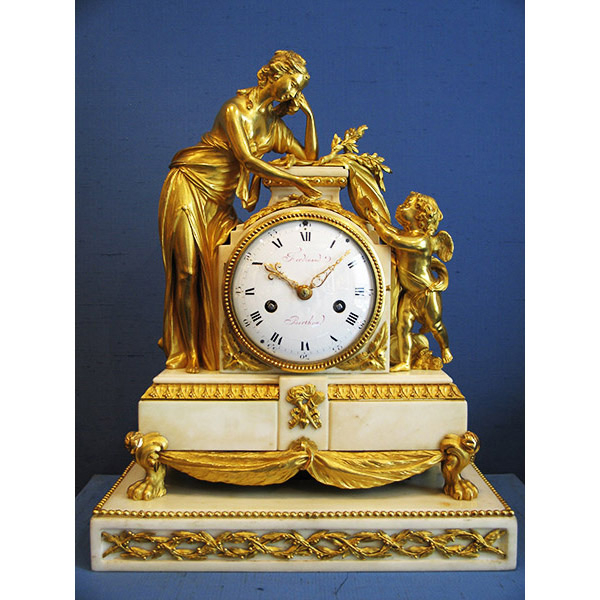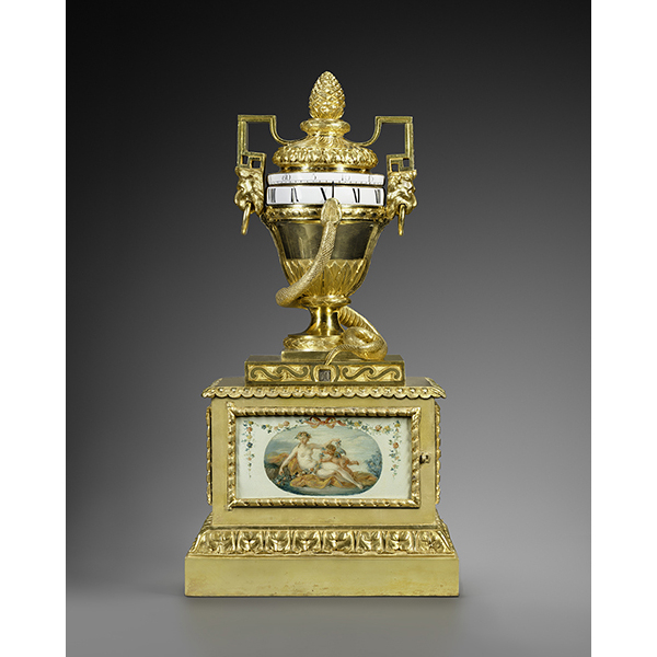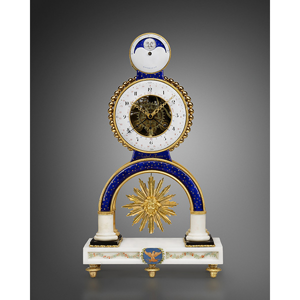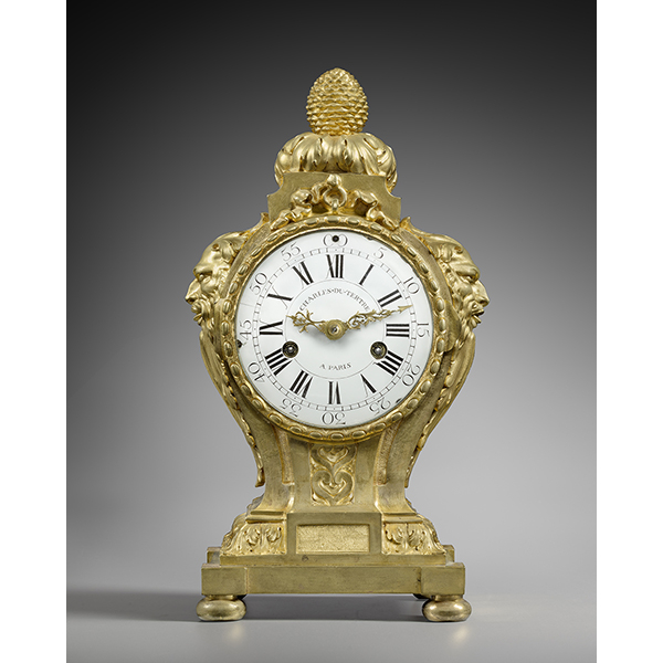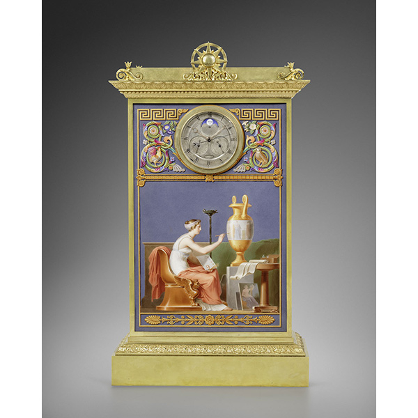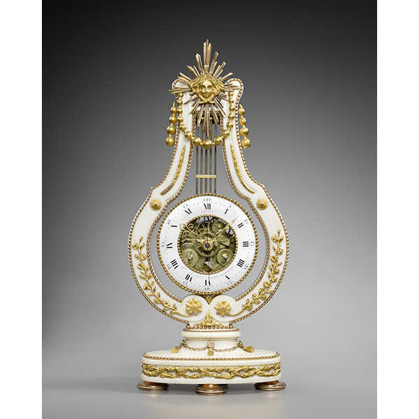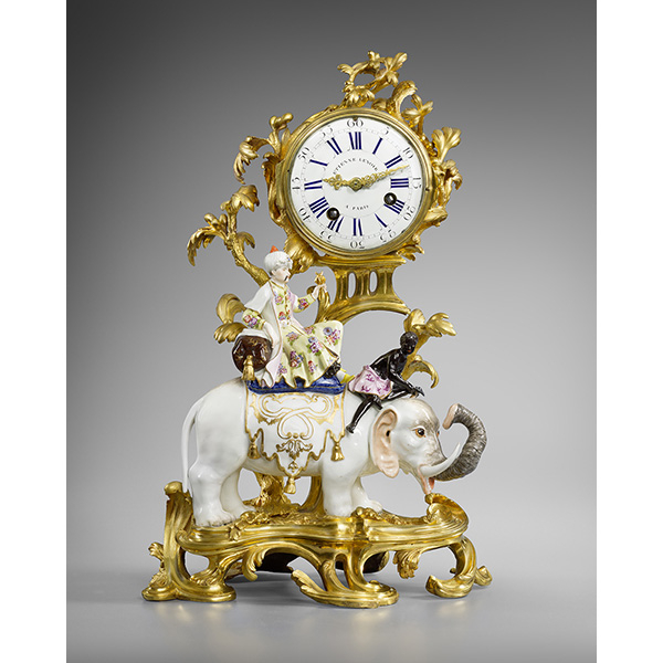An Arita porcelain mantel clock A Louis XVI Lyre Clock A mantel clock representing Anacreon playing the lyre A late Louis XVI griotte marble mantel clock representing Fidelity An architecturally shaped regulator A late Louis XV gilt bronze cartel clock A Louis XV Allegory of Water mantel clock signed Saint-Germain The Marquis Clermont d’Amboise’s Meissen porcelain elephant clock A Robert Robin painted Carrara marble mantel clock A gilt and patinated bronze Urania clock A gilt bronze travel clock A Louis XVI Paris biscuit porcelain Caryatid mantel clock A rosewood and amaranth travel clock A mantel clock by Bailly A Louis XVI small lyre-shaped mantel clock A late Louis XV satyr mask clock A late Louis XVI skeleton clock signed Ridel Paris A Louis XV amaranth cartonnier clock by Saint-Germain A Louis XVI mantel clock symbolising Sorrow after a design by Vion An early Louis XVI gilt bronze and ebony mantel clock representing Urania A Louis XVI two-tone gilt bronze mantel clock A negro clock by Deverberie Charles-Alexandre de Lorraine’s Rape of Europa mantel clock A Directoire skeleton clock signed Bourdier A Saint-Germain model vase clock by Baillon Baron Prévost’s Sèvres porcelain mantel clock An early Louis XVI mantel clock representing War and Peace after a design by Vion A Consulat neoclassical marquetry mantel clock A rare and important Louis XVI turned ivory mantel clock A Meissen elephant clock by Le Noir A Louis XVI two-coloured gilt bronze mantel clock representing Theatre and Music A mahogany cartonnier clock indicating the Republican calendar A marble and bronze pedestal clock by Osmond A Louis XVI skeleton clock signed Gavelle l’Ainé A Louis XV elephant clock by Baillon A Rape of Europa clock by Osmond A vase clock decorated with the Four Seasons A small Louis XV eagle clock A Directoire spaniel mantel clock A Louis XVI white marble vase mantel clock A skeleton clock by Hubert Sarton