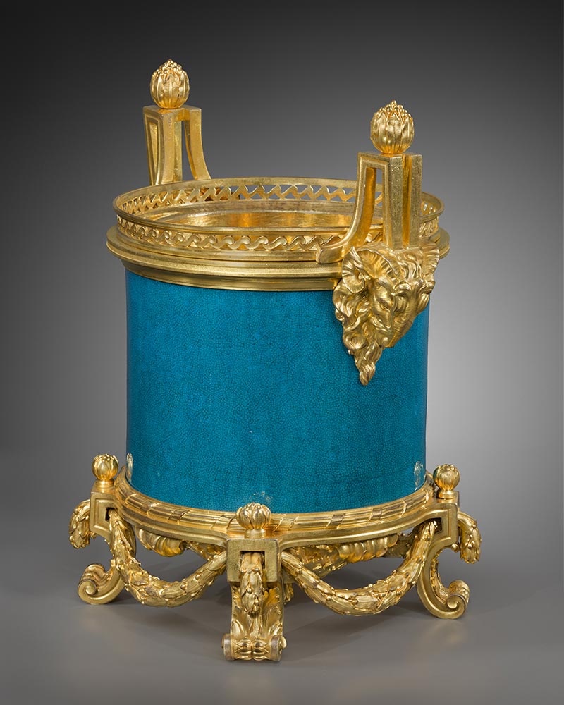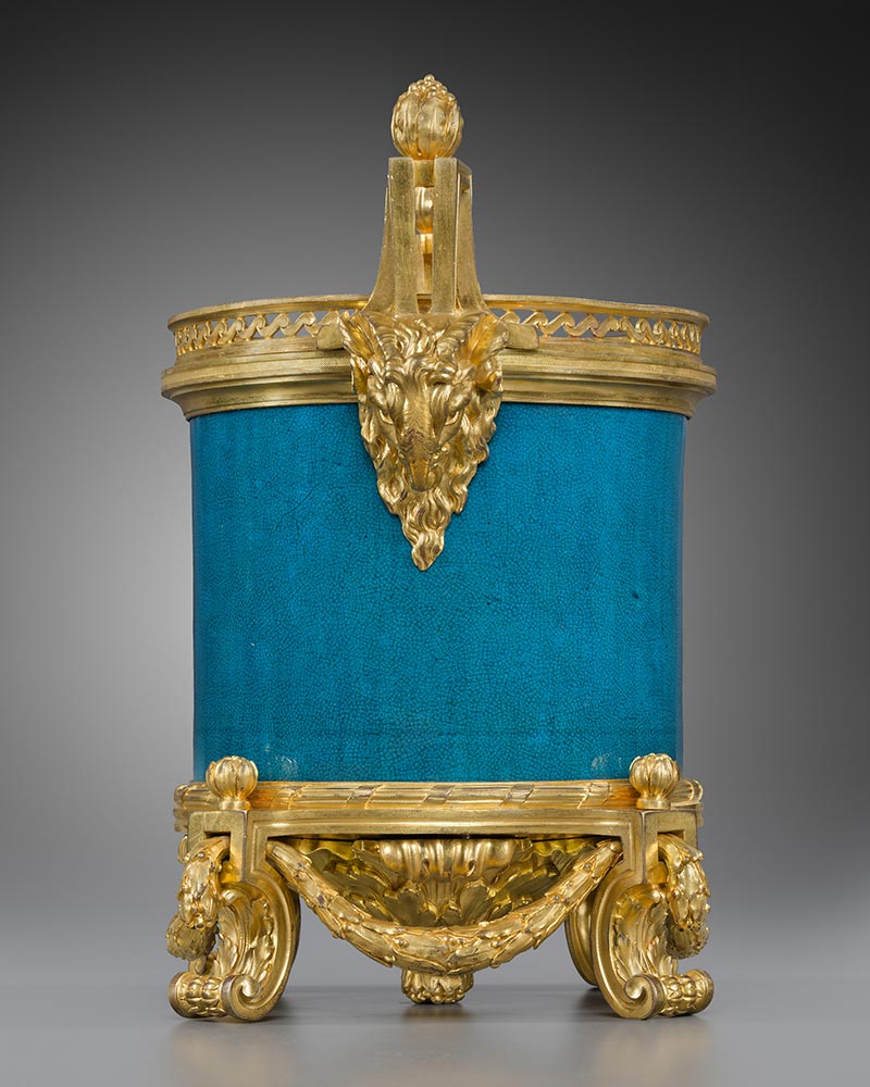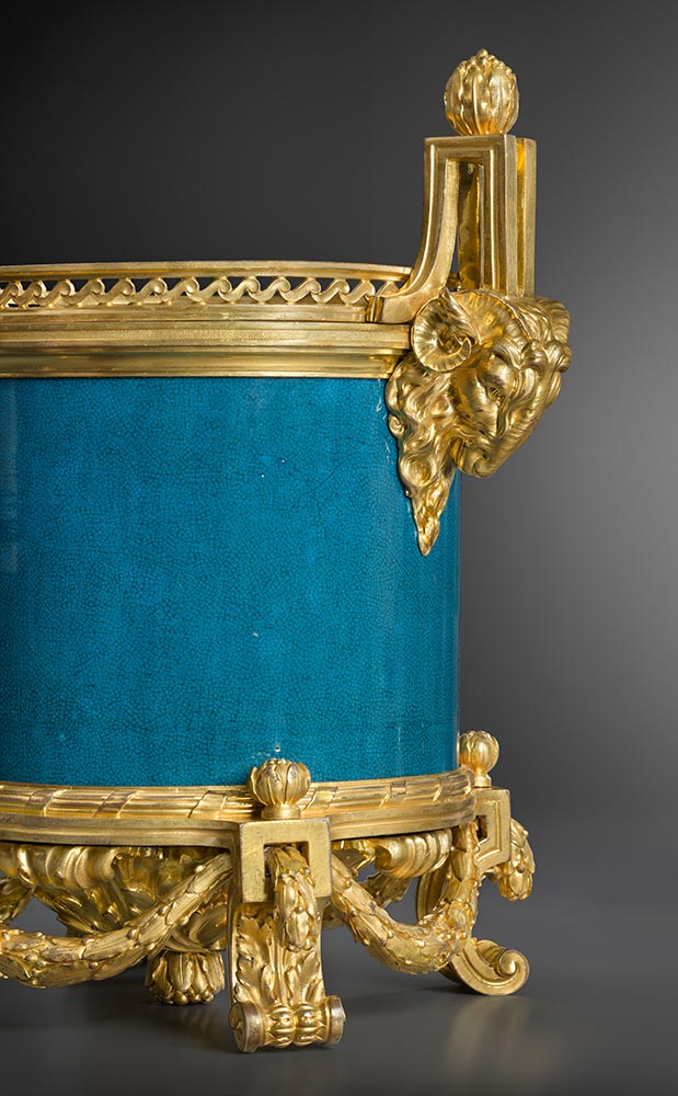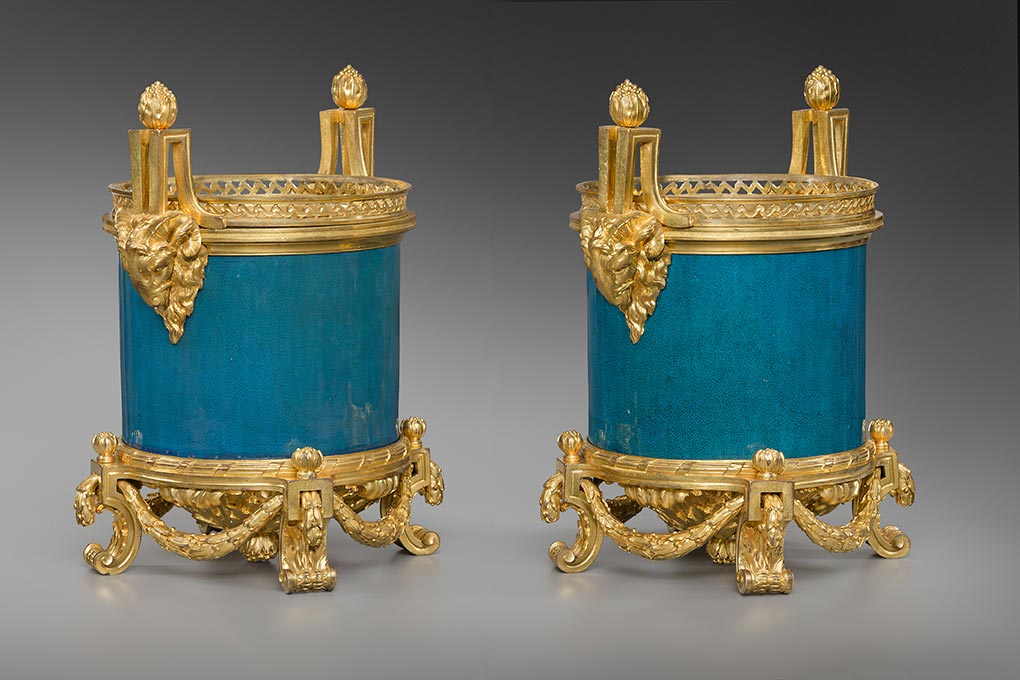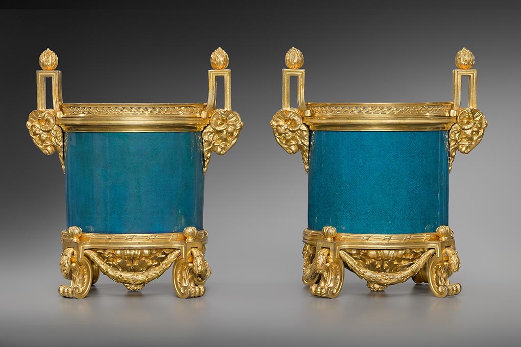 La paire de vases fit partie des collections de Jean de Julienne (1686-1766) et se trouvent ainsi décrite dans son inventaire après décès : « deux barrils de porcelaine bleue céleste, à magots sur le dessus montés d’ornements, goût antique en cuivre ciselé doré d’or moulu…