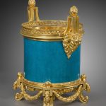Elle figura dans la vente organisée peu après, le 30 mai 1767 : « deux barrils d’ancien bleu céleste, fond uni à dragons en relief, dont chaque couvercle est terminé par un magot, de même porcelaine, rieur & gros ventre ; ils sont richement ornés de bronze , goût antique, & méritent attention par leur forme, & la rareté de trouver en cette qualité des morceaux de pareille conséquence (N°1424)