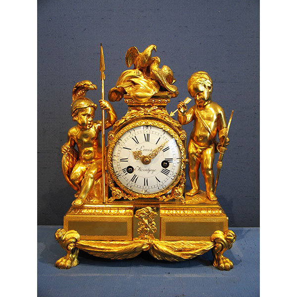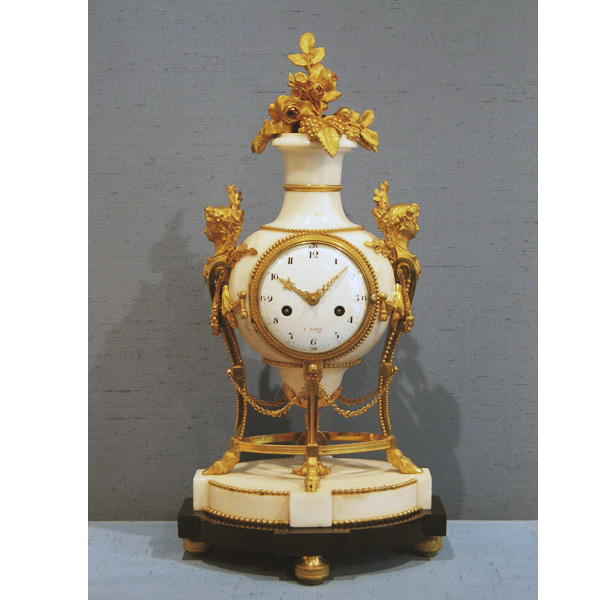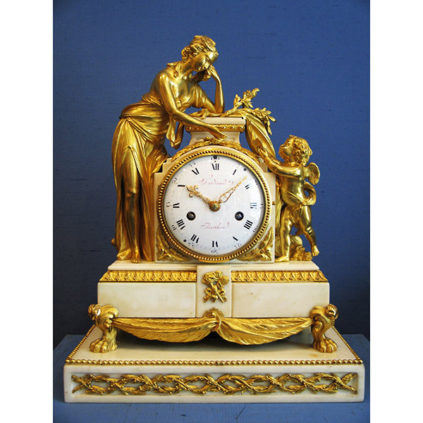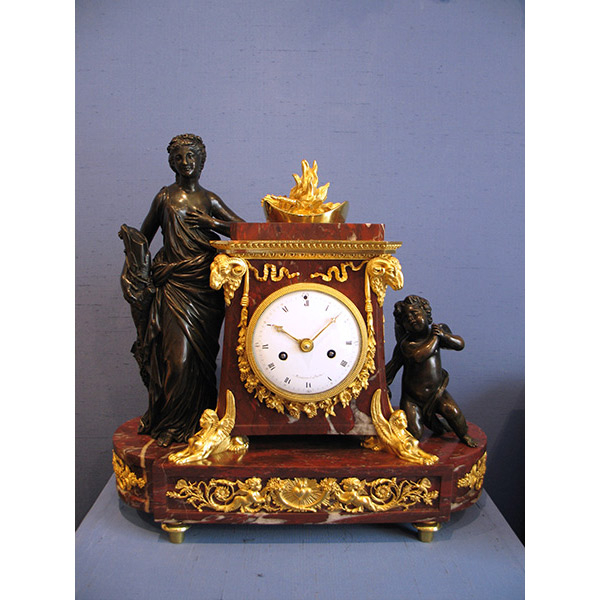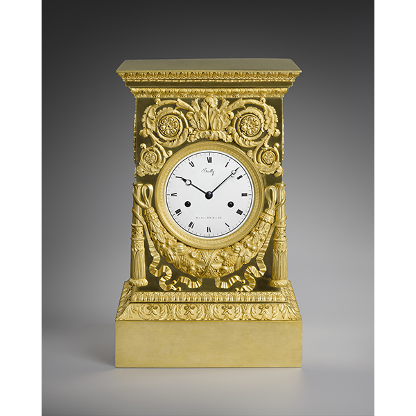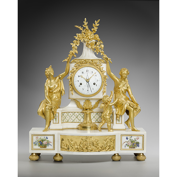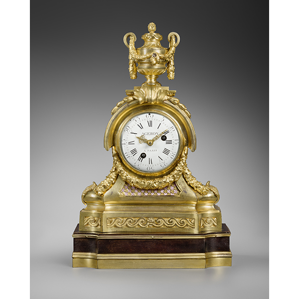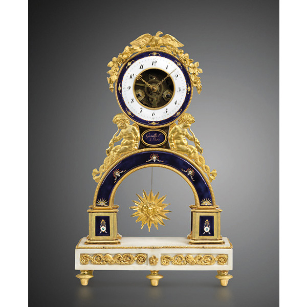 Une pendule représentant Uranie en bronze ciselé, doré et ébène Une pendule en forme de colonne tronquée, en bronze ciselé, doré et marbre blanc Une pendule représentant le théâtre et la musique en bronze ciselé et doré à deux tons d'or Une pendule en bronze ciselé et doré symbolisant « la guerre et la paix » Pendule en bronze doré de deux tons d’or Pendule symbolisant la fidélité Une pendule borne en acajou, argent, bronze ciselé et doré, signée Lepaute à Paris Pendule squelette à deux cadrans Une pendule squelette à quatre cadrans en bronze doré Pendule en amarante, modèle de Saint-Germain Une pendule en bronze ciselé et doré signée St. Germain Pendule en biscuit de porcelaine de Paris Une pendule squelette signée BOURDIER Une pendule en bronze ciselé, doré et porcelaine du Japon Kakiémon Une pendule de voyage ou de chambre à réveil matin par tirage, signée Verdier à Paris Une pendule de voyage vitrée à toutes faces en bronze ciselé et doré Pendule à l’éléphant du marquis Clermont d’Amboise Pendule en porcelaine de Sèvres du baron Prévost La pendule de Charles-Alexandre de Lorraine symbolisant l’enlèvement d’Europe Une pendule en bronze ciselé et doré signée Saint-Germain Une petite pendule lyre Pendule squelette aux émaux bleu nuit Pendule symbolisant la douleur, modèle de Vion Une pendule à l’éléphant en porcelaine de Meissen Un cartel en bronze ciselé et doré signé Ransonet a Nancy, Pendule symbolisant l’eau, signée de Saint-Germain Pendule vase à cercles tournants représentant les quatre saisons Une pendule borne en bronze ciselé et doré, le cadran signé Bailly Hr Une pendule représentant le buste d’Uranie Pendule aux épagneuls Régulateur en forme d’architecture, vitré à toutes faces Pendule Consulat Une pendule lyre à mouvement squelette oscillant en marbre blanc Pendule en ivoire Une pendule aux masques de satyre Une pendule en bronze ciselé, doré, marbre blanc et peint Une pendule à l’éléphant signée Jean Baptiste Baillon Une petite pendule au palmier surmontée d’un aigle, coquillage escargot et lézard Une pendule en bronze ciselé, doré et patiné, représentant une jeune femme de la Louisiane assise dans un char rentrant des plantations Une pendule borne représentant Anacréon tenant une lyre Une pendule au taureau symbolisant « l’enlèvement d’Europe » Pendule en forme de vase