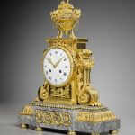 – Musée des Arts décoratifs, legs Louise Grandjean, marbre bleu turquin, le cadran signé Robin, horloger du Roi à Paris.