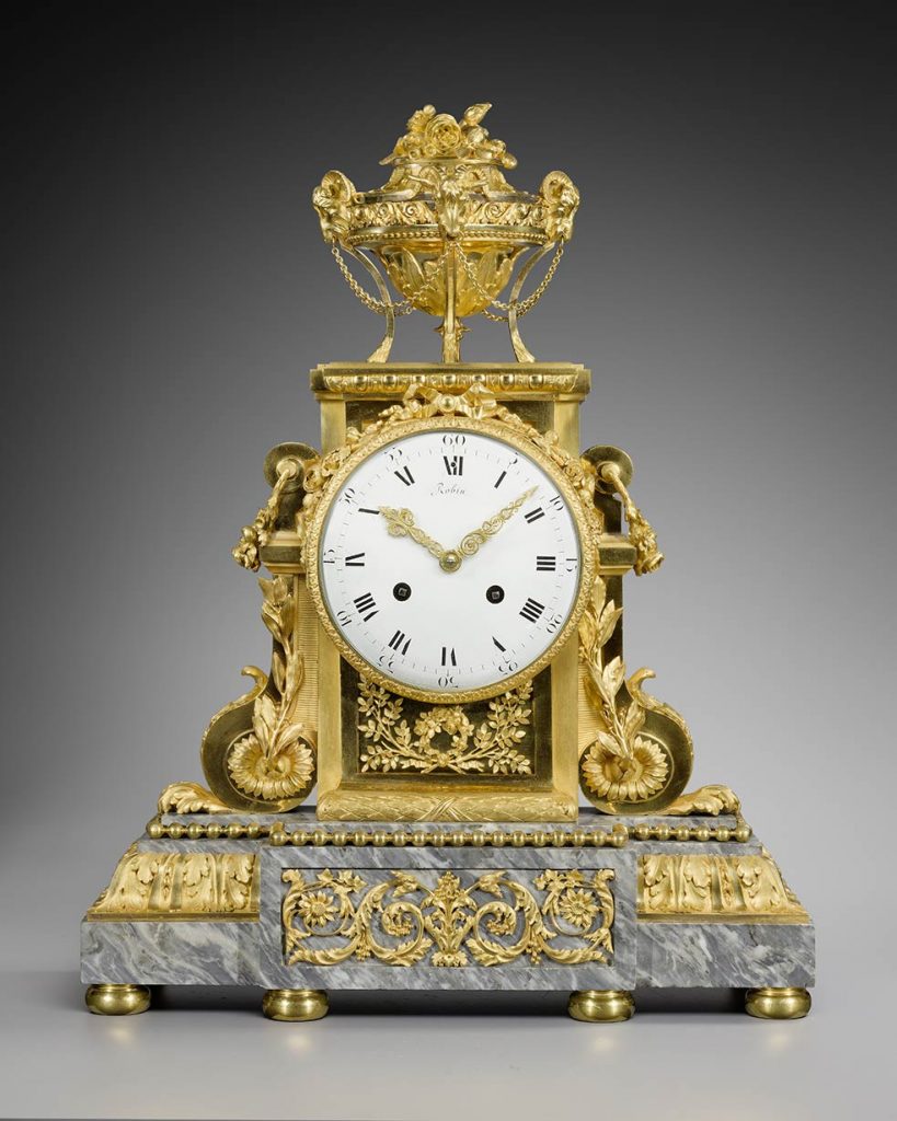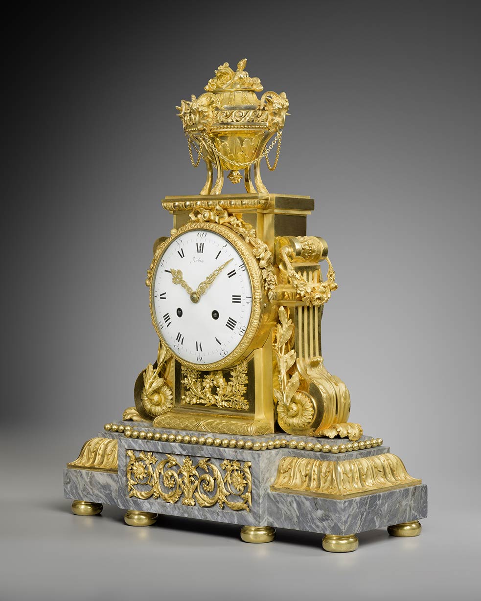 – Musée des Arts décoratifs, legs Louise Grandjean, marbre bleu turquin, le cadran signé Robin, horloger du Roi à Paris.