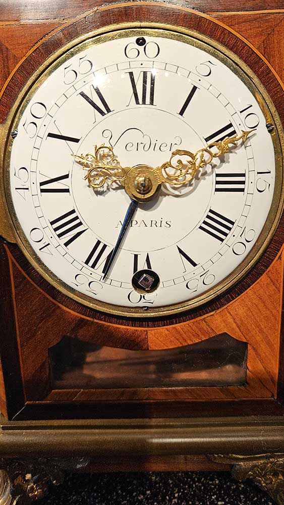 signée Verdier à Paris, en bois de rose, amarante, bronze ciselé et doré,