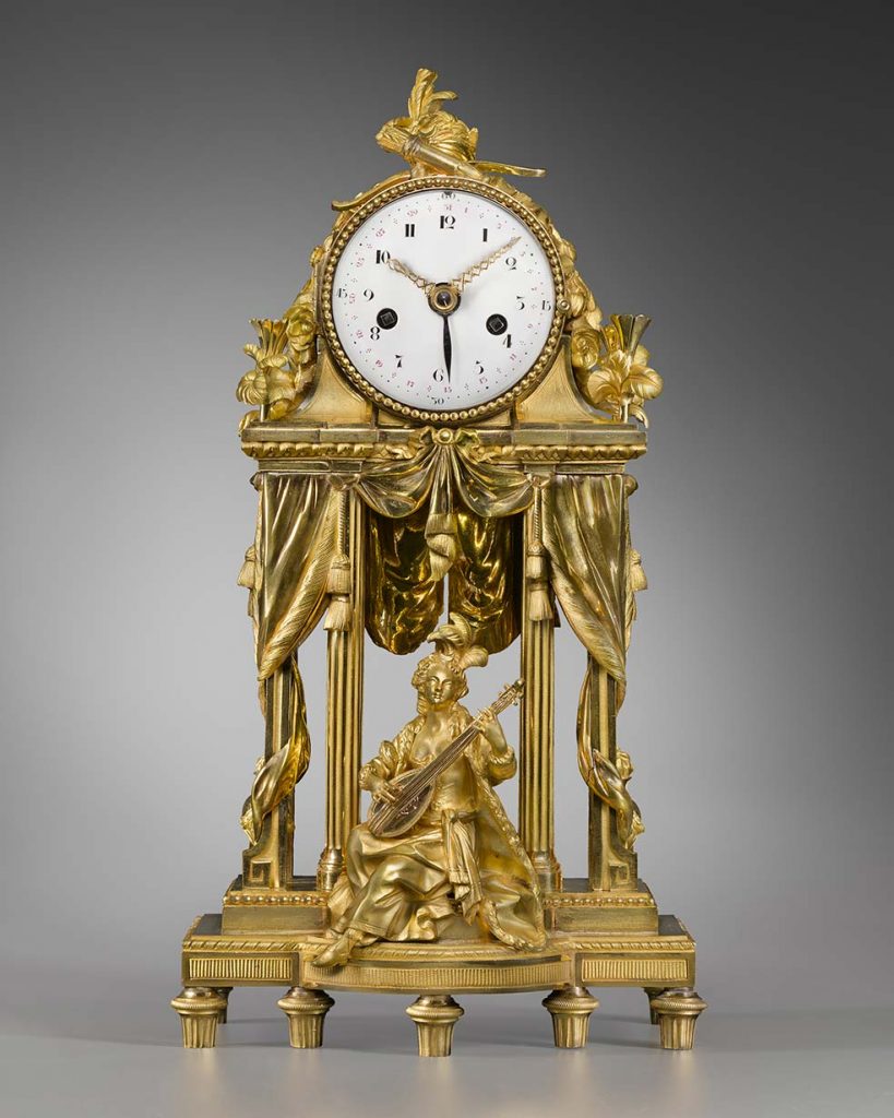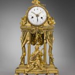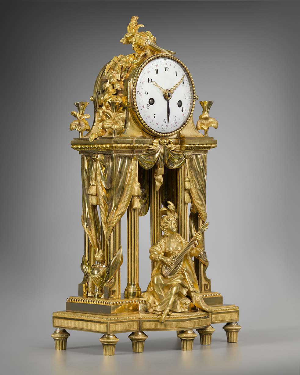 Une pendule identique en bronze doré et marbre blanc, le cadran signé Barancourt à Paris, ancienne collection Pascal Izarn, est reproduite dans G. et A. Wannenes, Les plus belles pendules Françaises, Editions Polistampa, 2013, page 269.