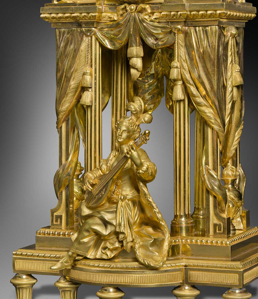 Une pendule représentant le théâtre et la musique en bronze ciselé et doré