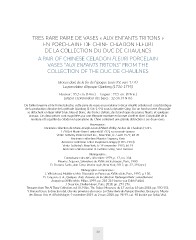 oiseaux. Ces deux pièces sont magnifiées par une élégante monture en bronze ciselé et doré. L’originalité de la